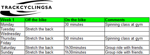 I've referred to the value of miles in the legs in one of my previous blogs, but generally ones training program should be in support of your own goals e.g. if your goal is to be fit and healthy and to train regularly then you might set a goal to train 4 times a week for 30 minutes to an hour per day. If your goal is for instance to be the top pursuit rider in the club, province or country then a more structured approach in terms of training and racing will be needed.